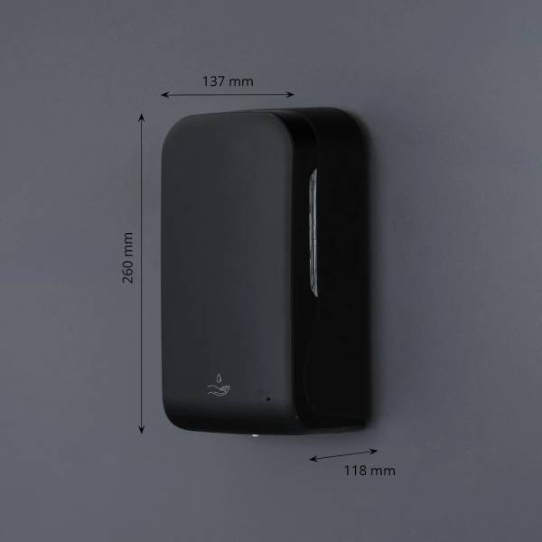 Der Sensor Schaumseifenspender in edlem Schwarz matt überzeugt durch sein modernes Design, seine hochwertige Verarbeitung und die berührungslose Bedienung. Ideal für Waschräume, Büros, Hotels oder Gastronomiebereiche, in denen Hygiene und Komfort im Vordergrund stehen.