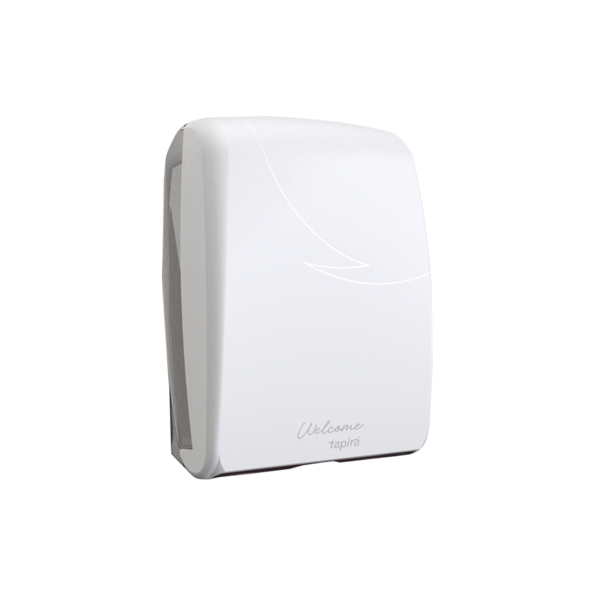 Spender für V-gefaltetes Papier sowie für Z-Falz und C-Falz. Wandbefestigung (mit Dübeln im Lieferumfang), Öffnung mit Schlüssel und Schnappverschluss.