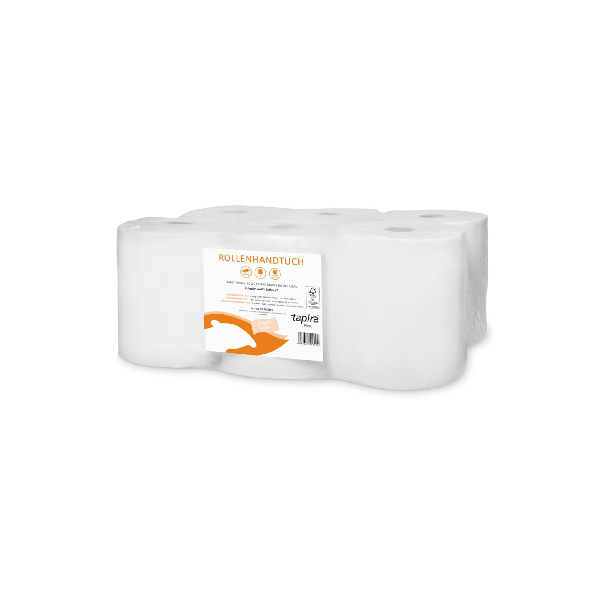 Packungsinhalt: 6 Rollen à 19,8 cm Breite × 140 m Länge – ideal für stark frequentierte Spender